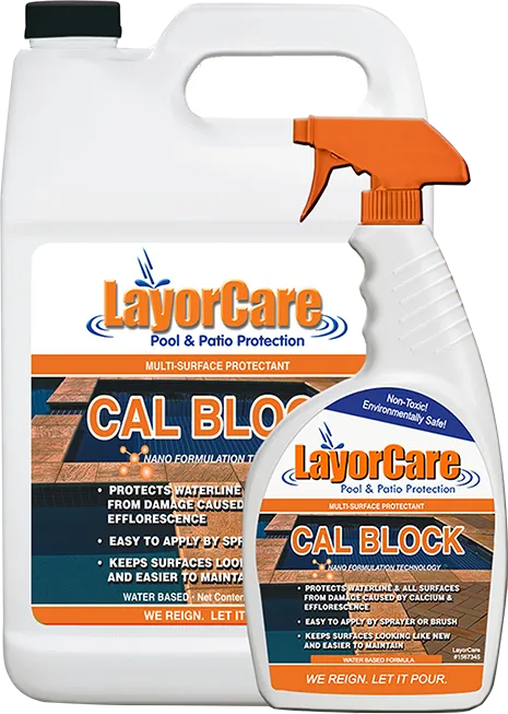 CAL BLOCK , a safe, non-toxic, invisible, NANO FORMULATION, multi-surface protectant that is specifically formulated to Block calcium and hard scale from building up and damaging your pool tiles and water features